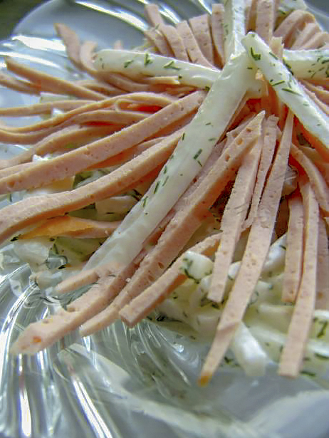 Очень, очень вкусный салат. Там не только индейка, там еще сливочный сыр и орехи, полноценный ужин практически.